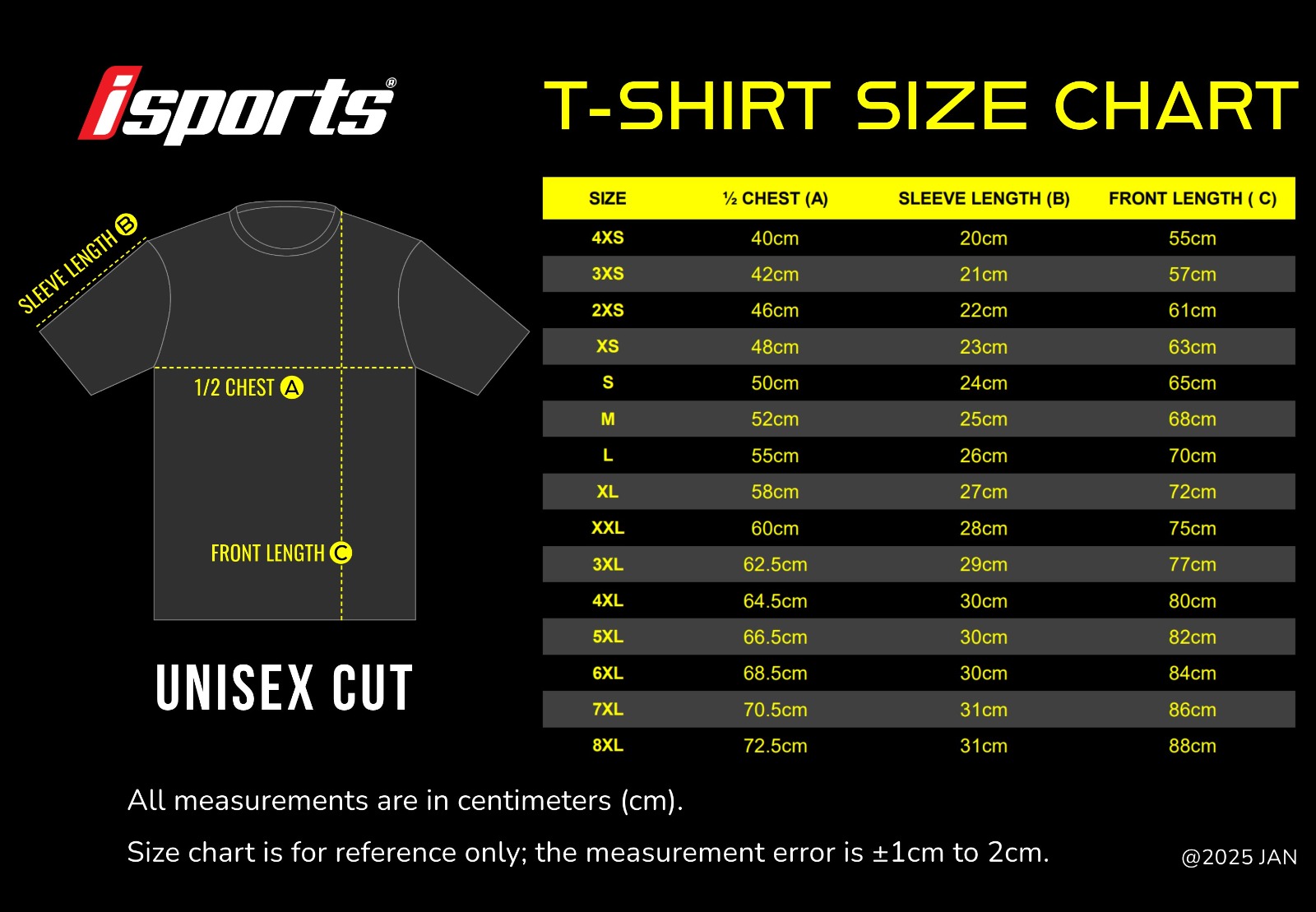 4XS, 3XS, 2XS, XS, S, M, L, XL, 2XL, 3XL, 4XL, 5XL, 6XL